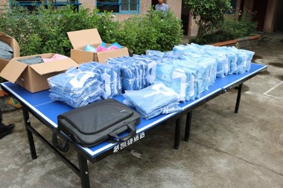 公司捐赠的校服、笔记本电脑、学习用品及乒乓球桌